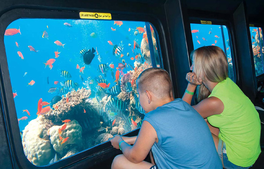 • Get up close with the vibrant coral reefs that are home to a diverse array of marine species. The semi-submarine takes you to the best spots for observing the underwater beauty of the Red Sea.